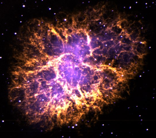 Right: Heinrich III. sieht den neuen Stern über der Stadt Tivoli (Tyburtina), source Wikipedia Left: Crab nebula